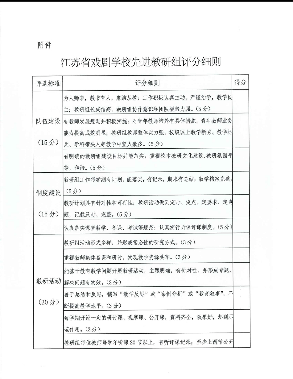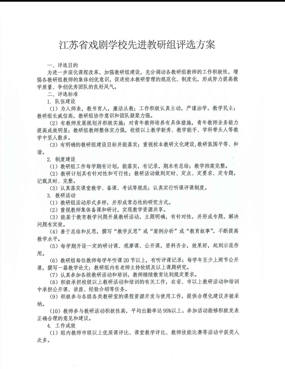 江苏省戏剧学校先进教研组评选方案
