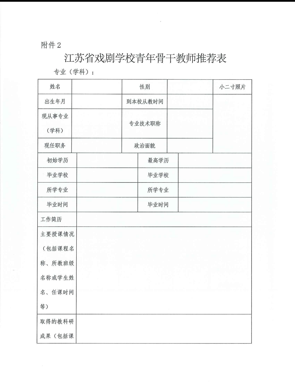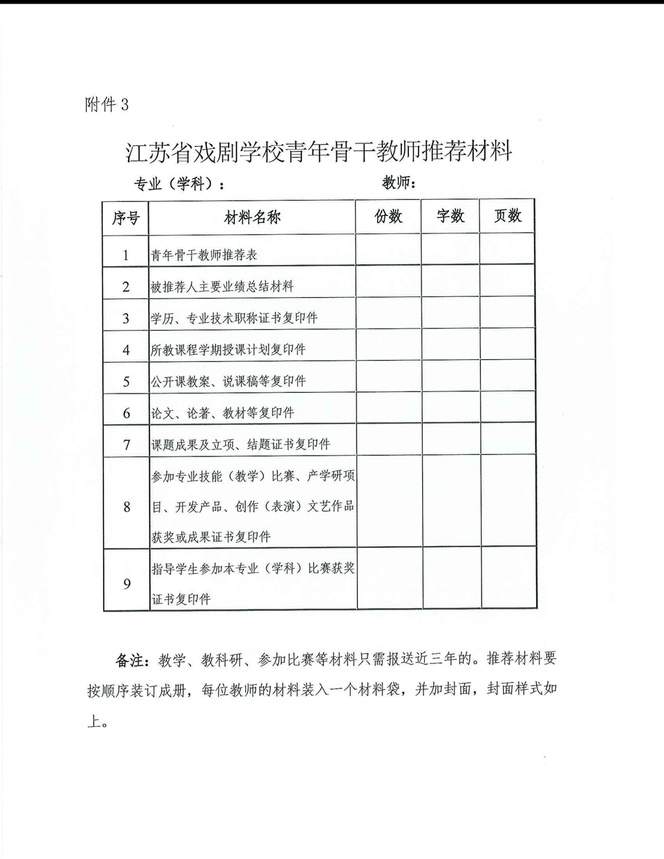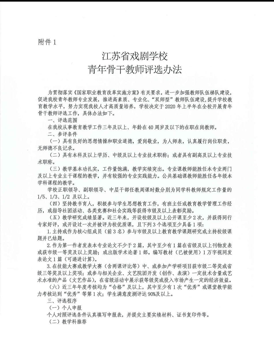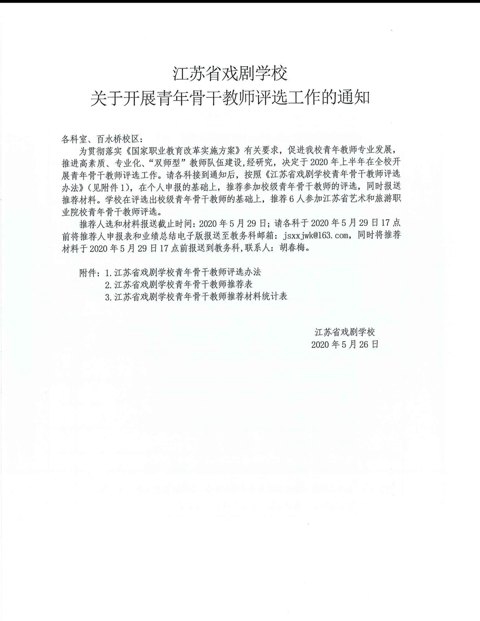 江苏省戏剧学校关于开展青年骨干教师评选工作的通知