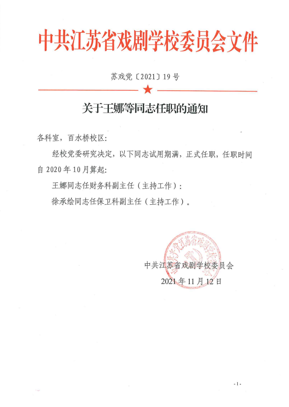 关于王娜等同志任职的通知