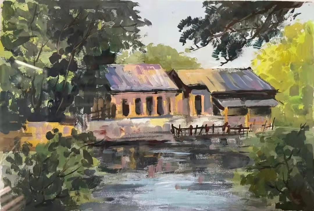 在金中伦和崔磊两位老师的悉心指导下,学生在为期4周的课程里用写生的方式先后描绘了郑和公园、白鹭洲公园以及校园的自然风光,完成了200多幅作业,专业技能得到了进一步提升。3月7日至9日,18级舞美班师生认真组织、积极协调,一丝不苟完成了展览的筹备和布置工作。